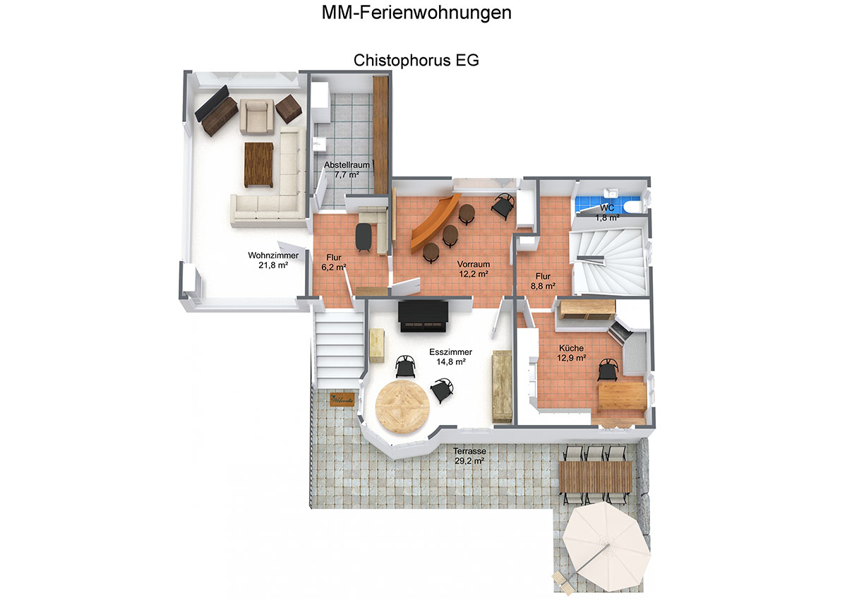 Das Ferienhaus Christophorus steht Ihnen zur alleinigen Nutzung zur Verfügung. Drei Garagen und zusätzlich zwei Stellplätze. Großer umzäunter Garten mit viel Platz zum Spielen.
