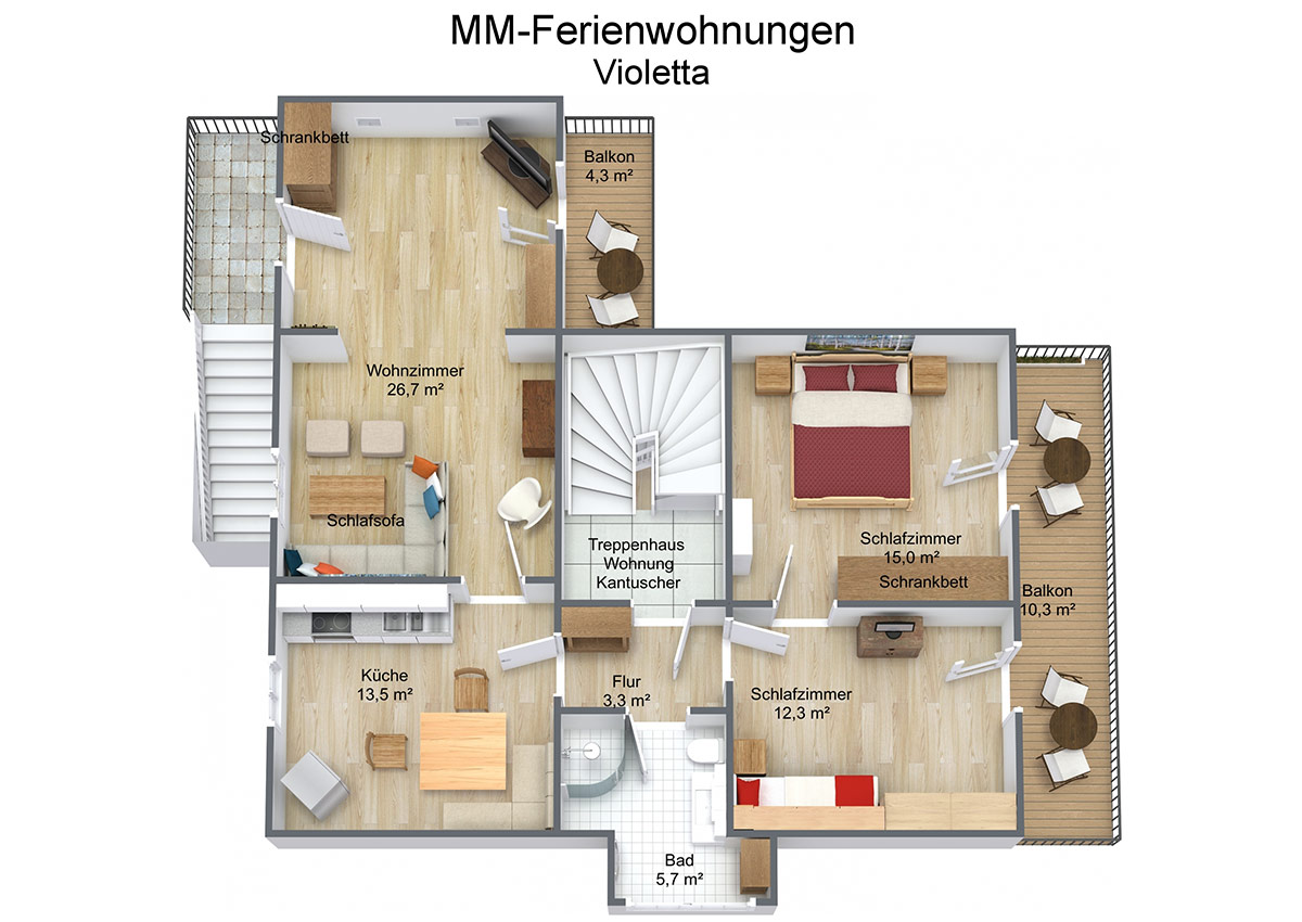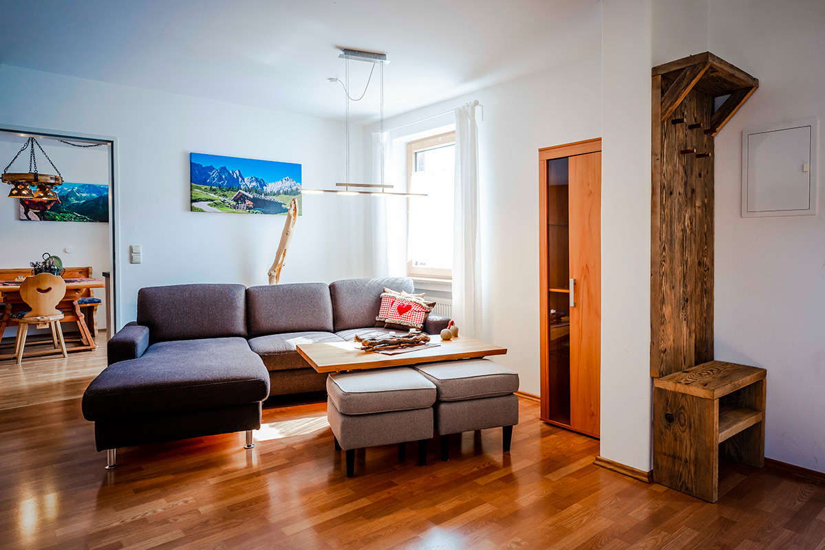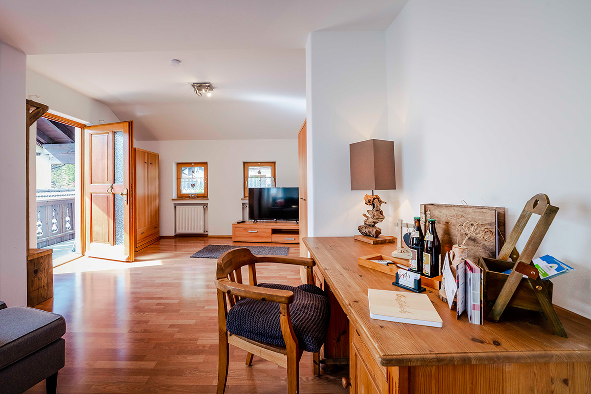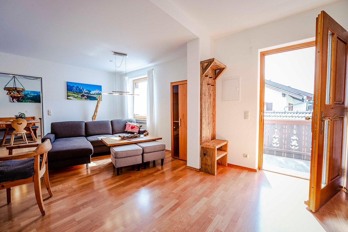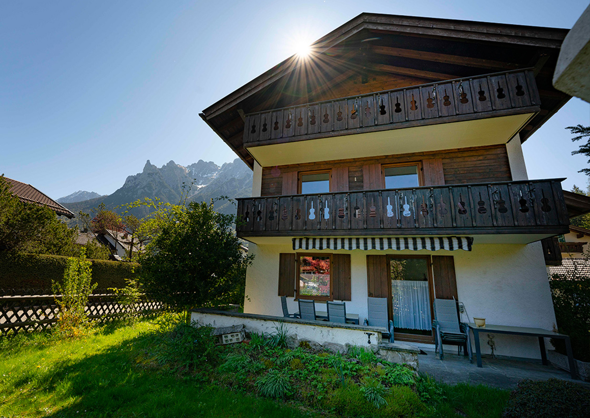 Die Ferienwohnung Violetta befindet sich im 1. Stock des Ferienhauses Zum Geigenbauer. Die Wohnung verfügt über einen eigenen Treppenaufgang. Vom Balkon haben Sie einen herrlichen Blick auf den Kranzberg und dem Wettersteingebirge.