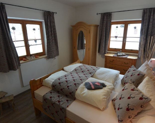 Die luxuriös eingerichtete Wohnung Erli 4 im bayerischen Landhausstil bietet einen 22 m langen, möblierten Süd- und Westbalkon für entspannte Urlaubstage.